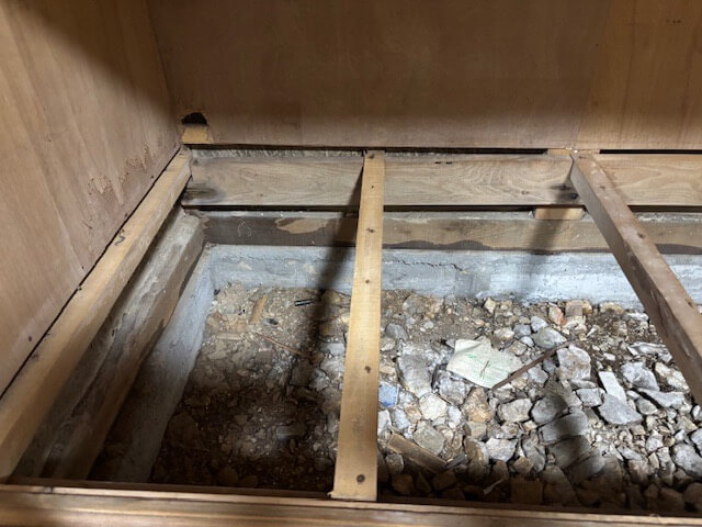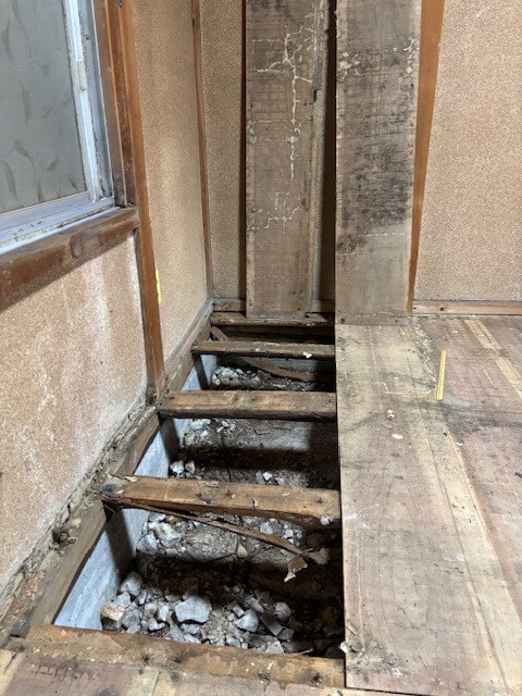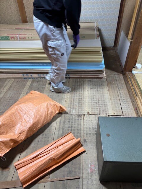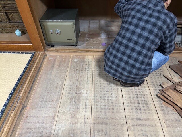 大工さんが床上を捲るとすぐに